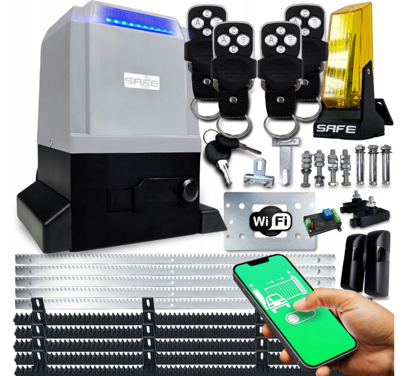 - ✅ Napęd SAFE przeznaczony jest do obsługi bram do 800 KG.